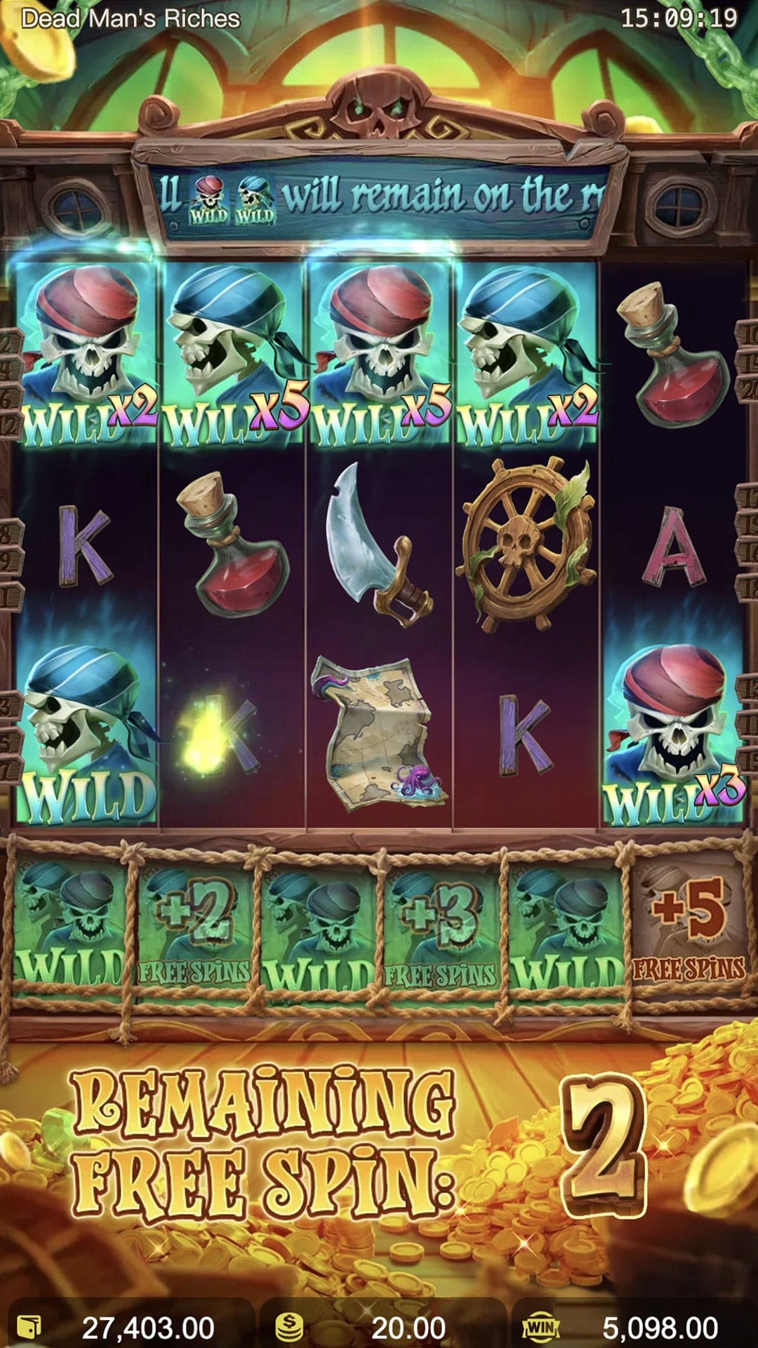The auditory experience in Dead Man’s Riches is integral to its immersive quality. A somber, atmospheric musical score, tinged with maritime and ghostly motifs, sets a suspenseful tone. The creaking of the old shipwreck, the gentle gurgle of water, and distant, mournful calls contribute to the feeling of being submerged in a lost world. Spin sounds are satisfyingly mechanical, while wins are accompanied by the clinking of coins and more upbeat, though still thematically appropriate, jingles. Feature activations are heralded by more dramatic sound cues, such as the clang of chains or a spectral whoosh, effectively building anticipation. The Wild symbols often have their own unique sound effects as they move or combine, further enhancing their significance. Overall, the sound design works in concert with the visuals to create a cohesive and engaging player environment.
